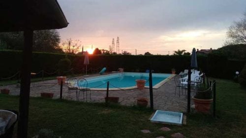 Il posto è bello, abbiamo un giardino recintato con piscina, un bel porticato e camere divise per famiglie… tutto come previsto!