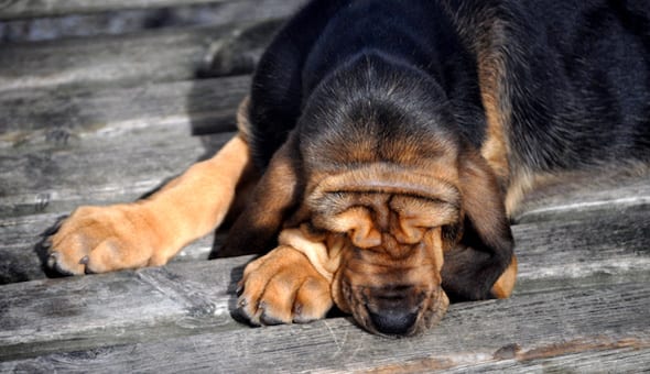 O si insegna al bloodhound, fin da cucciolo, che non può e non deve salire sul nostro, oppure potremo anche mettergliene a disposizione una decina, ma lui sceglierà sempre e solo quello su cui siamo straiati noi.