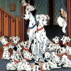 a proposito di cani bianchi e neri scambiati per dalmata. Passeggio insieme ad una mia amica, con la mia metticcia braccoide a macchie e il suo setter inglese a macchie, passa una signora che esclama: “Toh! la RICARICA dei 101!”. Evidentemente Crudelia Demon e’ caduta in disgrazie e finita a lavorare in un call center di una compagnia telefonica!