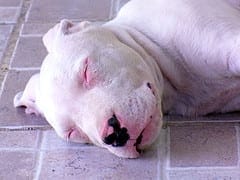 BREVI CENNI STORICI: non ho mai parlato di origini e storia negli altri “veri Standard”, ma quando ce vo’… e qui ce vo’, perché la storia del Dogo non solo è più recente della stragrande maggioranza delle altre razze (nato nel 1964, riconosciuto dalla FCI nel 1973); non solo è particolare perché il Dogo è stato riconosciuto come prima (ed tuttora unica, se non erro) razza autoctona argentina. E’ anche una storia un po’ buffa, perché il dottor Antonio Nores Martinez mescolò ben dieci razze diverse (se a qualcuno interessasse: Perro de Pelea Cordobes, Mastino Inglese, Bull Terrier, Boxer, Pointer, Alano Arlecchino, Dogue de Bordeaux, Bulldog Inglese, Irish Wolfhound e Mastino dei Pirenei) ed impiegò circa 40 anni per arrivare ad un cane che oggi, in Italia, nove volte su dieci viene definito “un grosso pit bull bianco”, oppure “un alano bianco”.