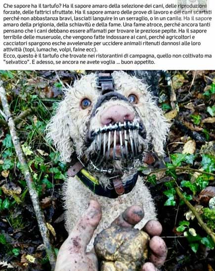 Che sapore ha il tartufo? Ha il sapore amaro della selezione dei cani, delle riproduzioni forzate, delle fattrici sfruttate.