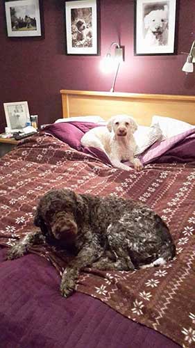 Infine una nota di smentita sul maltrattamento di quel lagottino: sebbene non sia riuscita a rintracciare i proprietari, ho trovato altre sue foto, quelle con cui è illustrato l’articolo, che provano che il cane non vive nel box, e che non esce dal kennel solo per far fruttare i soldi in tasca ai suoi umani, che si fanno le giornate di scarpinate in mezzo ai boschi e alle colline per fare una di quelle poche attività rimaste che consentono al cane di divertirsi e all’umano di lavorare.