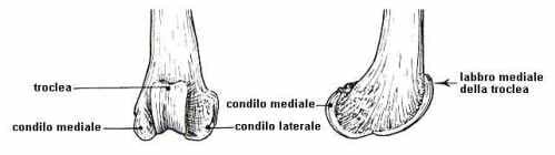 – la parte distale (o terminale) del femore: sulla faccia craniale (sul davanti, per intenderci) presenta una fossa, detta troclea, nella quale scorre la rotula nei movimenti di flessione ed estensione della gamba, mentre dietro a questa troviamo i condili, ovvero due grosse formazioni ovoidali che servono come appoggio sulla tibia;