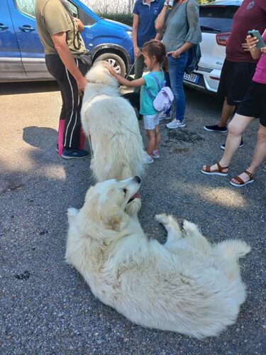 Mentre Fabiana compiva la sua Odissea per ottenere l’agognato libretto, Giada mi elencava tutti i cani visti fino a quel momento e coglieva l’occasione per spupazzarne qualcun altro. Le foto con i cagnONI le abbiamo subito girate alla nonna per farle prendere un coccolone, perchè siamo brutte persone.