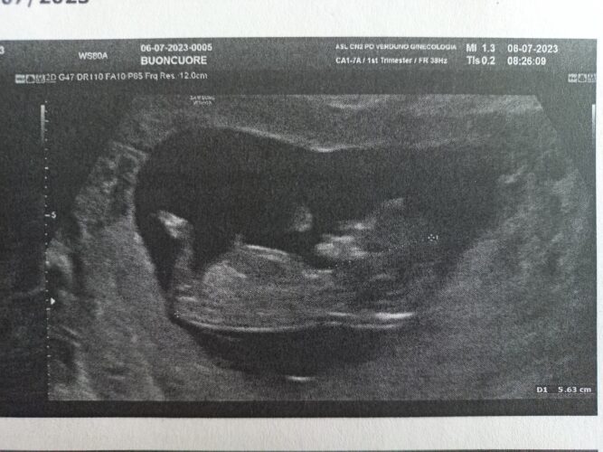 Ecco, questo è il principale motivo per cui questo articolo esce così a distanza dall’effettivo svolgimento dell’esposizione: oltre all’ecografia in foto, stavamo aspettando i risultati di un esame per avere la certezza che stesse tutto procedendo per il verso giusto e abbiamo voluto aspettare per annunciare la novità.