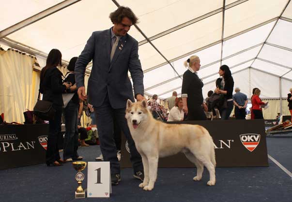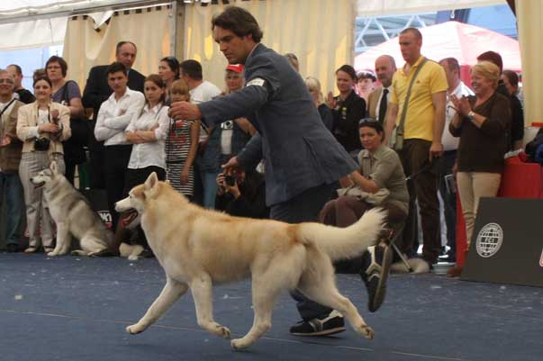 Ch. Willoby della Vanisella, per gli amici Roger (e da appassionata di tennis non posso che rimarcare il fatto che questo nome sia decisamente segno di longevità agonistica!) è in assoluto il Siberian Husky che ha vinto di più in Europa (e forse anche oltre) abbinando doti eccezionali nel lavoro alla strepitosa bellezza che l’ha visto trionfare in tante esposizioni: ed è finalmente Campione del Mondo… dopo spareggi che sono stati accompagnati dall’ovazione di tutto il pubblico presente a Salisburgo.