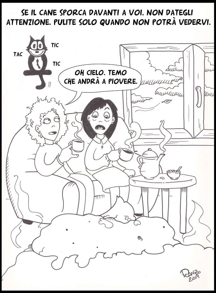 Lo sgridi anche se sai che non dovresti, sei tentata di spalmargli il naso nella pipì anche se sai che il primo comandamento della gestione delle deiezioni canine recita proprio “non intingere il naso del cane nei suoi bisogni”, hai una depressione post partum manco lo avessi partorito tu quel fetido ammasso di pulci… e delle volte trovi dei quantitativi talmente esagerati di cacca e pipì che inizi a guardare con sospetto anche i vicini.