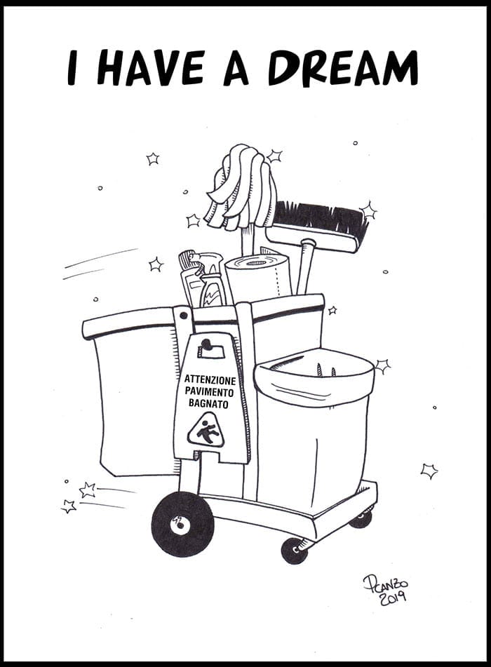 Penso con odio a quelle donne ultra‐performanti degli spot, che la mattina se ne stanno nei loro laboratori asettici, tutti bianco e acciaio, con i loro camici e gli occhialoni di plastica trasparente a proteggere i loro occhioni vivaci, mentre studiano sorridenti come eliminare il residuo 0,001% dei batteri dopo una passata di straccio con il loro disinfettante per pavimenti. Me le immagino, quando tornano a casa, talmente sicure del loro lavoro che servono gli omogeneizzati ai loro gemelli direttamente spalmandoli per terra, perché loro hanno sconfitto ogni forma di vita che non sia quella umana, con quel detergente.