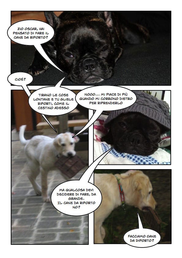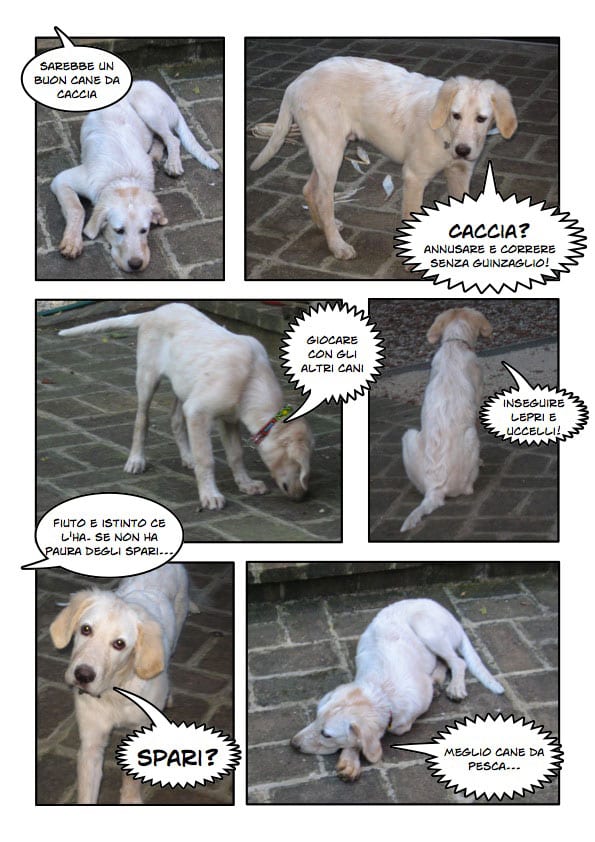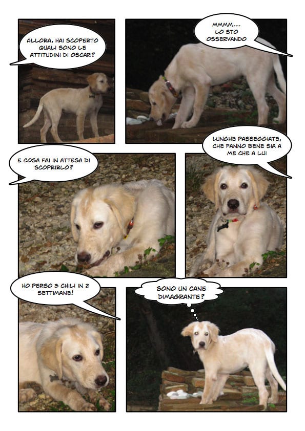 Ahahaha! La faccia di Oscar quando pensa “sono un cane dimagrante?” è fantastica! Sembra che lo pensi davvero 😀 anche il cane da pesca però…