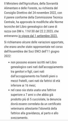 E i controlli su ciò che viene dichiarato sui pedigree non ci sono, persino in expo ho visto rarissimamente verificare il microchip dei soggetti esposti. Si poteva riempire di giudizi il libretto qualifiche di un altro cane, esponendo quello “sbagliato”. E sì, tanti lo hanno fatto. Quindi sì, bella l’intenzione, ma poi ci andrebbero controlli a campione sul dna. Che costano. E che quindi non si faranno, almeno ad oggi dove l’obbligo di deposito del campione biologico è ristretto solo a poche casistiche specifiche.