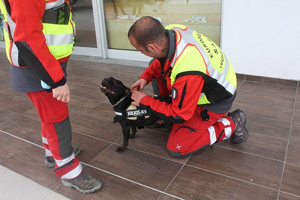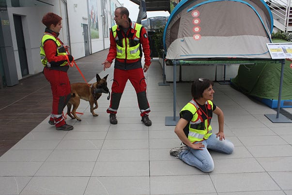 Questa, per gli osservatori, è una parte entusiasmante perché si vede il lavoro “vero” (ricordiamo che l’ESART lavora raramente ai casi di persone scomparse – e comunque sempre in collaborazione con le unità cinofile da ricerca in superficie): il loro compito più specifico è quello di collaborare con le Forze dell’Ordine in ambito forense.