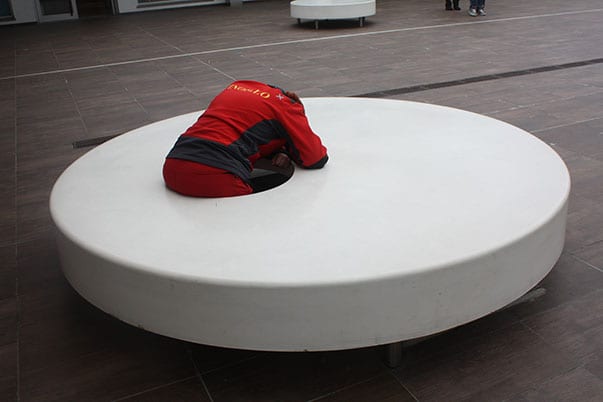 Si lavora, si corre e si ansima, ma ci si diverte anche molto: ad ulteriore dimostrazione (e ad imperitura memoria, utilizzabile anche come arma di ricatto, volendo…) potete vedere sulla destra la serissima istruttrice nonché Megapresidente galattica dell’ESART nell’impeccabile imitazione del “rosso d’uovo” (d’altronde, se le panchine del Molo 8.44 hanno un design che ricorda un uovo al tegamino, non è neanche colpa nostra).
