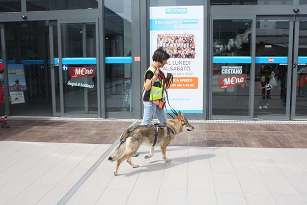 Interessante notare che il mantrailing, svolgendosi prevalentemente in ambiente urbano, mette il cane di fronte a situazioni che possono suscitare perplessità o addirittura timore: chi conosce i cani lupi cecoslovacchi e la loro innata diffidenza, per esempio, si stupirà sicuramente nel vedere come Luna (nella foto a destra) affronti nientemeno che una scala mobile.