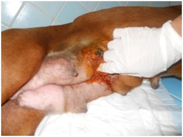 Chikie non si poteva ricucire poiché la pelle non avrebbe retto e la lacerazione era bruttina: quindi il veterinario ha premuto per fare uscire lo schifo e tappato le lacerazioni con i dovuti medicinali e antibiotico.