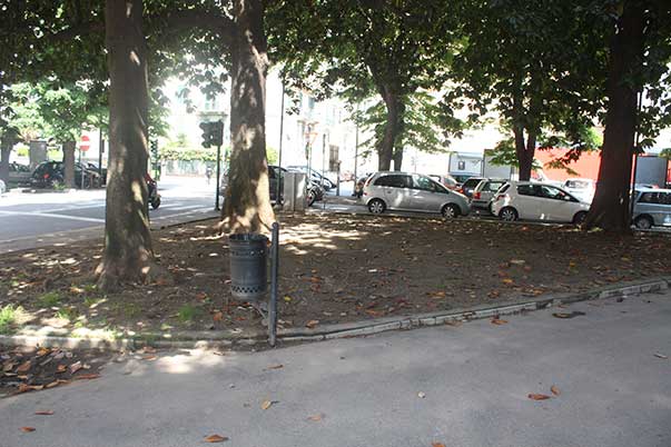 Pesando circa venticinque chili, a portarla in braccio per duecento metri (come mi consigliò di fare l’antipaticissima guardia zoofila che mi rifilò la multa) proprio non la facevo: ma siccome il cane era mio e non era colpa di nessuno – se non della vita stessa – se era vecchio e malato, avrei anche accettato di buon grado di pagare la multa, considerandola un effetto collaterale dell’avere una cagnona in tardissima età… se non fosse stato che la cosiddetta “aiuola” era quella che vedete nella foto (foto scattata, peraltro, ieri mattina, in previsione di scrivere questo articolo: sono passati quattro anni, ma il nostro “verde” cittadino è rimasto immutato).