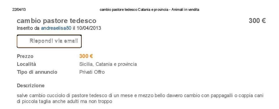 dite che se metto un annuncio così palesemente assurdo qualcuno finisce x propormi realmente ciò che crede essere sto fantomatrico “Wolfbull da guardia e caccia al bisonte” O X chiedermi l’altrettanto fantomatico “PITbull XXXL DA GUardia e difesa KATTivissimo” (magari proponendomi i cambio un “SAN BERNARDo miny-toy nano”)?