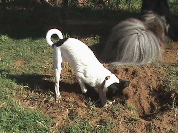 La nostra cana (e le sue amiche, di altri proprietari) diventa una scavatrice solo quando si incontra nei giardinetti ed è uno dei loro giochi di società preferiti… a volte scavano a turno mentre le altre guardano oppure tutte insieme.
