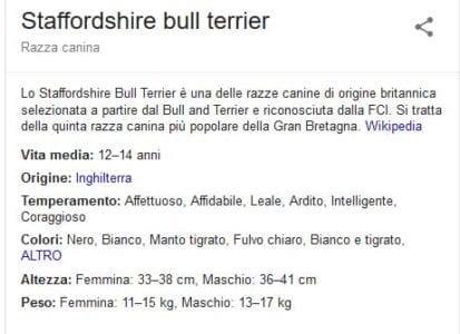 A farmi nascere questa domanda, l’aver cercato su Google “Staffordshire Bull Terrier” e aver visto la descrizione riassuntiva che ne viene offerta: