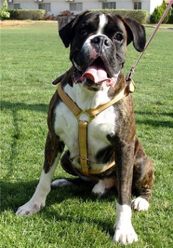 Purtroppo non posso più presentarvi la mia boxer Rhumba, passata a miglior vita ormai da più di trent’anni: ma credetemi sulla parola, vi prego, quando vi dico che, se non l’avessi già chiamata Rhumba (per il modo in cui “ballava” quando faceva le feste), l’avrei probabilmente chiamata Houdini quando scoprii che non c’era pettorina al mondo capace di contenerla.
