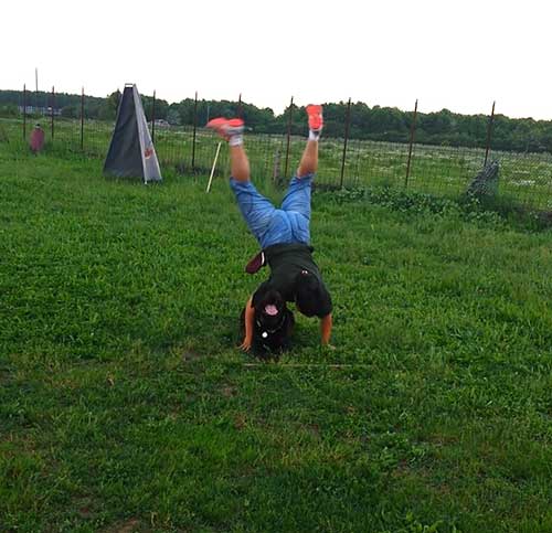 Finalmente riesco a superare anche la parte delle capriole, do a Tonino il “resta”, vado oltre, tendo una gamba davanti a me e lo richiamo; “salta!”