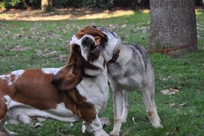 Il colpevole non è però un cane adulto bensì un cucciolone che, a mio avviso, non ha saputo correttamente confrontarsi e calibrare la sua aggressività verso il cucciolo (di stazza ben superiore alla sua!) causandogli una ferita di poco conto.
