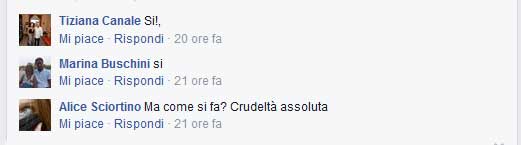 Però ci resto un po’ male perché Facebook potrebbe essere un interessantissimo luogo di scambio di opinioni magari diverse, ma motivate: un “sì, è una crudeltà perché… ” (e ce ne sono stati, nei commenti) invita al dialogo, al confronto, magari anche alla riflessione.