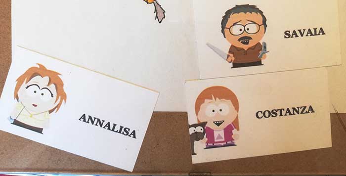 Per ora basti sapere che, non molto tempo dopo aver vissuto queste avventure, la figlia del dottore si sarebbe sposata e, invitati al pranzo del matrimonio, avremmo trovato i nostri posti al tavolo del ristorante contrassegnati da caricature disegnate ad hoc. Mia mamma appariva elegante e vivace; mio padre aveva in una mano una sega, nell’altra un cellulare, perché era notoriamente incapace di passare un giorno senza lavorare fra capanni, tettoie, pergolati, pollai, boschi e orti, ed era in grado al contempo di rimanere a parlare per ore al telefono con qualcuno.