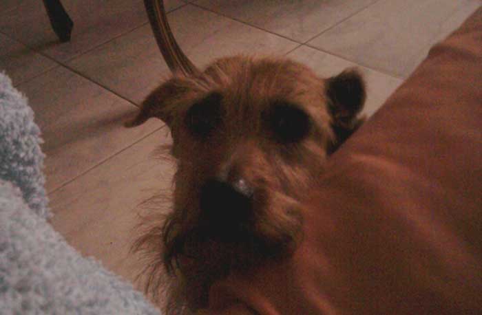 E così, un anno dopo l’approdo di Fluke e Attila in famiglia (le due vecchie meticce di Cirneco e simil-Pinscher erano mancate da molto tempo), apparve questa strana cagnetta, un incrocio di taglia medio-piccola dai tratti vagamente lupoidi, con le zampe corte, a pelo corto con abbondante sottopelo, con mantello prevalentemente arancio, chiazzato di bianco sul muso, sulla pancia, sui piedi e sulla punta della coda.