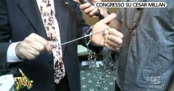 Striscia La notizia cavalca l’onda dell’animalismo spinto senza tener conto delle difficoltà riabilitative nei confronti di cani che altrimenti sarebbero destinati alla soppressione. Non fa eccezione questo servizio su Millan da cui un programma come Striscia attinge a man bassa anche perché Millan con i suoi metodi non si nasconde di certo. Dettp questo Io ho letto molte cose della signora Rossi e i libri di Millan. Nella sostanza dicono e sostengono, grosso modo le stesse cose e gli sessi principi che sono poi i capisaldi della cinofilia cosiddetta “tradizionale” che non si lascia condizionare da impurità new age che trovo piuttosto pericolose. Si può contestare certo il concetto di dominanza espresso da Millan e su cui in effetti non mi trovo molto d’accordo come tanti altri ma ciò che lui sostiene sono cose che noi cinofili e comportamentisti andiamo ripetendo da anni: limiti, confini regole ed esercizio continuo. Detto e precisato ciò, Millan maltratta i cani? Io l’ho visto all’opera dal vivo e gli interventi che introduce nei cani con il suo tocco non sono affatto dolorosi per i cani. Si può contestare il collare con le punte ma lui è indifferente in tal senso, lo usa come anche no e in alcune trasmissioni dice che non serve affatto. Ovviamente non è ostile al collare a “strozzo” in nylon.
