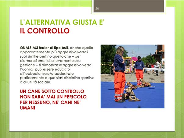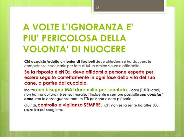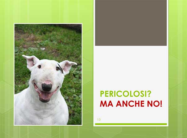 E quindi, come ho detto l’altra sera e come potete vedere nella slide, sono cani che vanno affidati alle persone giuste, e non a… cani e porci.