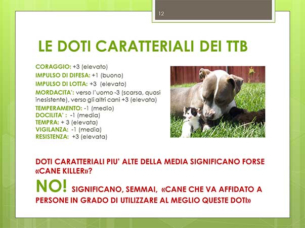 Una delle mie ultime slides sosteneva (e lo sostengo anche qui, con forza) che chi è attratto dall’immagine del cane “feroce” non è il proprietario adatto per un TTB.