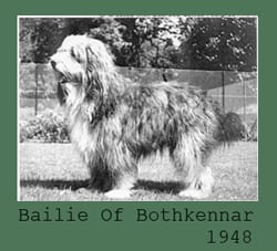 La razza si diffonde sia in Scozia che in Inghilterra. Con il passare dei secoli il Bearded Collie rischia di estinguersi, dato che i pastori che lo utilizzano non ne curano la selezione. Nel 1912 alcuni cinofili stilano il primo standard, ma con lo scoppio della prima guerra mondiale la razza rischia di scomparire definitivamente. Alla fine degli anni Quaranta Mrs. Willinson (Bothkennar) entra in possesso di una femmina Beardie, Jennie. Innamoratasi di lei e delle sue straordinarie doti nella pastorizia, si mette alla ricerca di un maschio. Dopo anni di ricerca, sulla spiaggia di Brighton, incontra la proprietaria di Bailie e, dopo lunghe trattative, riesce a farsi cedere quello che con Jennie formerà la coppia capostipite di tutti i Beardies esistenti oggi al mondo.