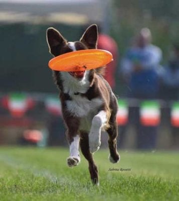 Il nostro amico (bipede) potrebbe però tenere in mano due dischi (poco sforzo, si tratta di qualche centinaia di grammi ognuno) e dopo aver sganciato il primo, preferibilmente in roller se il binomio è all’inizio e magari il Gianpoldo in questione è pure junior, e attirare l’attenzione del cane sul secondo frisbee dopo che il primo è stato preso in bocca.