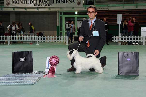 Confermo la disponibilità con gli estranei: anche sul Sealyham (proprio nell’allevamento di Lisa) girai, una decina di anni fa, un documentario…e devo dire che di solito, quando arrivavano in allevamento due perfetti estranei, una con una misteriosa scatola in mano (leggi: monitor) e l’altro con un’inquietante aggeggio nero sulla schiena, che ogni tanto ti veniva avvicinato minacciosamente (leggi: telecamera), la maggior parte dei cani ci metteva un po’ a fare amicizia. I terrier, in particolare, restavano molto spesso diffidenti e poco propensi a lasciarsi pasticciare, anche dopo due giorni di costante permanenza dei due rompiballe.
