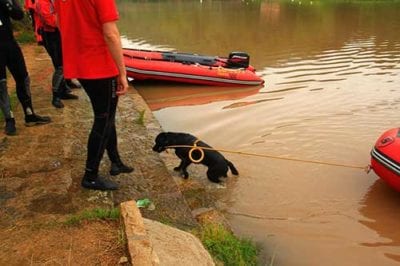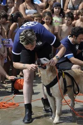 Insegnando al cane a girare intorno al gommone siamo super sicuri che vi siamo tutte le condizioni affinché il figurante riesca per tempo a prendere la cima.