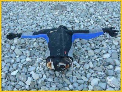 A mano a mano che il cane prende confidenza con il manichino il supporto del figurante non servirà più. Potremmo iniziare a variare la distanza da riva del manichino e la sua posizione. L’ideale sarebbe a croce con la testa verso il largo. Ma una volta lanciato… Come si metti si mette, l’importante è che il cane lo afferri per le braccia e non per testa o corpo.