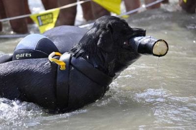 Ultima fase, ma solo quando il cane conosce per bene il manichino, lo facciamo lanciare dal gommone. Le prime volte prima di far partire il cane assicuratevi che il gommone sia a debita distanza. Questo per far sì che il cane non possa essere in alcun modo distratto. Poi via via, più distrazioni ci saranno, più sarà divertente mettere alla prova il Vostro lavoro!
