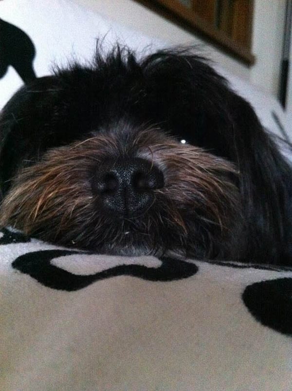 Occhi larghi, rotondi, né sporgenti né infossati; ben distanziati; marrone scuro: bordi palpebrali neri