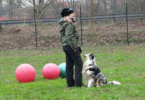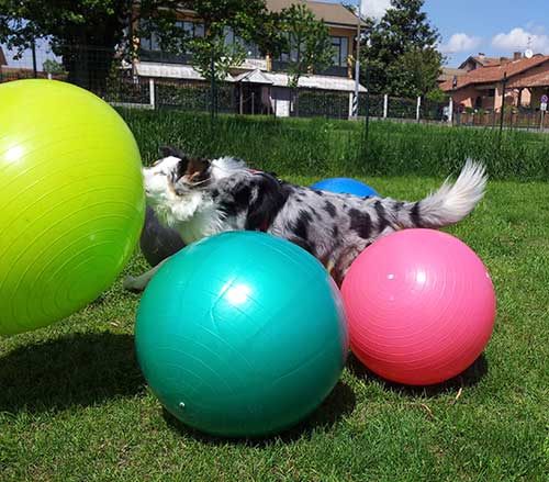 Se ho un pastore australiano di certo non uso una palla di diametro 85, sicuramente si diverte come un matto ma non vede i miei segnali gestuali, se ho un alano non metto una da 45 cm di diametro perché non è il massimo della comodità per spingerla: dovrebbero essere più o meno un diametro uguale all’altezza del cane alla spalla.