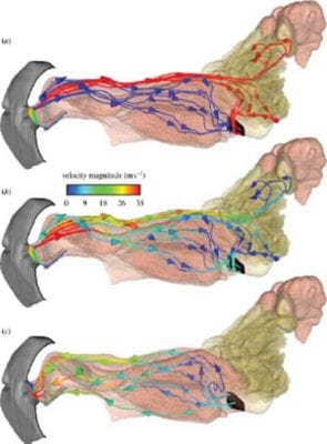 Solo il 12% dell’aria inspirata raggiunge la parte interessata all’olfatto, mentre la rimanente scivola verso la faringe e raggiunge i polmoni. Annusando in maniera profonda, l’aria rimane intrappolata ed accumulata all’interno della sporgenza sub-etmoidale, in modo che rimanga a contatto con le cellule olfattive ed i recettori il più a lungo possibile.