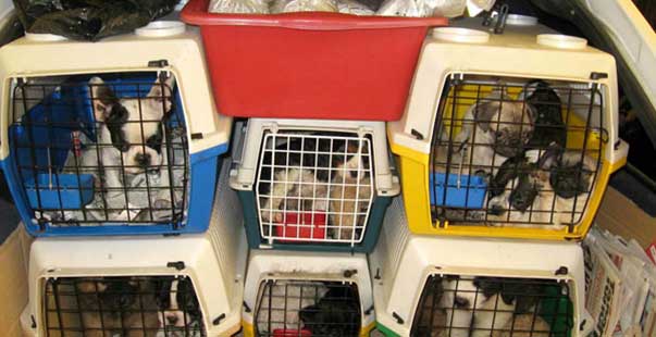 I cani possono viaggiare nei bagagliai, stivati come galline (ammesso e non concesso che sia giusto trasportare così anche le povere galline): e proprio così vengono trasportati i cani in queste staffette fraudolente.