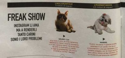 Grumpy Cat avrebbe avuto il suo “broncio” anche se non fosse diventata una star di Internet, e lo stesso vale per gli altri animali che il servizio cartaceo elenca con la didascalia “Freak Show”.
