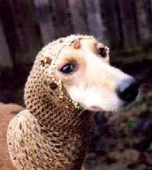 Ma se il nostro cane ha già bisogno di certi capi di vestiario (come nel caso dei levrieri saluki, che devono indossare la cuffia quando mangiano perché altrimenti si masticherebbero il pelo delle orecchie, che cade nella ciotola)…allora via libera ad interpretazioni come quelle che vediamo in queste foto (i capi, confezionati all’uncinetto, sono tutti leggerissimi, anche quelli che non lo sembrano! Se volete sorridere ancora, potrete godervi altri modelli cliccando qui).