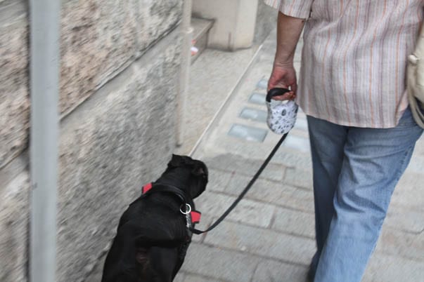 Non preoccuparti, signora Rossi, dei tuoi problemi con la diabolica abbinata pettorina + flexi.