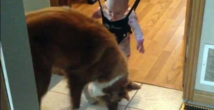 Accidenti….che salti……e se per “sbaglio” il cane si “fiondasse” saltellando sulla bimba, con un’unghia della zampotta gli si potrebbe portar via un’occhio……….( non è per niente “carino” il video! )