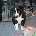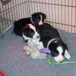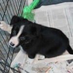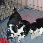 Naturalmente scaramanzia vuole che non se ne parli i primi tempi, perché anche io so bene quante siano le cose che possono andare storte con una cucciolata neonata (anche se, per fortuna, tutto sommato a me non è mai capitato il peggio): ora, però, i cuccioli hanno 40 giorni, e posso ormai parlarne abbastanza tranquillamente. Appena mi sono affacciata, ho subito puntato quella più lontana, perché aveva tanto bianco. Questa cucciolata è nata tutta di bianchi e neri come il papà (eccetto una tricolore), ed io speravo nel blu merle della mamma; nei bianchi e neri, che comunque mi piacciono, io amo i mantelli con tanto bianco, e invece tutta la cucciolata è molto scura; insomma, appena arrivata mi è caduto l’occhio sulla cucciola che mi attirava di più esteticamente e che già avevo “puntato” tra le foto della cucciolata che venivano messe online.