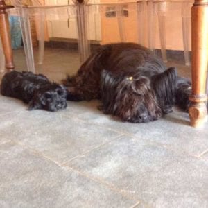 E poi lui… Paco. Lui è un Briard grosso e nero, mi mette un po’ di soggezione, ma più che altro è una scena per fargli credere che comandi lui. In realtà è buonissimo, non mi ha mai sgridato e anzi sembra che mi apprezzi molto, specie in certi periodi due volte l’anno, ma guai se si permette di annusarmi sotto la coda, in “quei giorni”. Ah, non c’è storia, si becca delle sgridate anche lui, io non guardo in faccia nessuno.