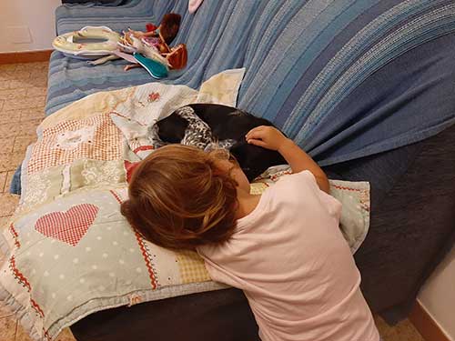 Per carità, essendo figlia di un padre che da piccolo causò numerosi infarti alla mamma andando a ronfare con i cani nel box in allevamento, o a spupazzare cani qua e là in expo, a volte spiegando alla mamma “quello lì non toccallo pecchè ‘inghia” e quant’altro, ha tutti gli alibi del caso sulla poca accortezza nell’approccio coi cani.